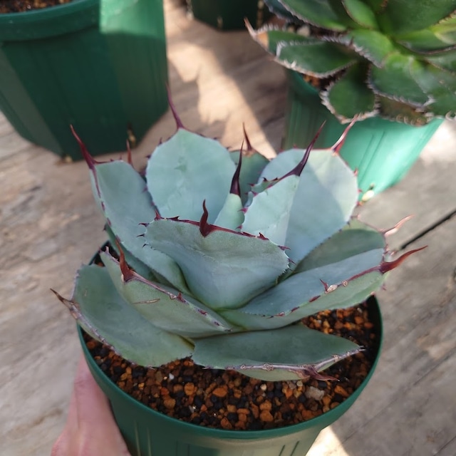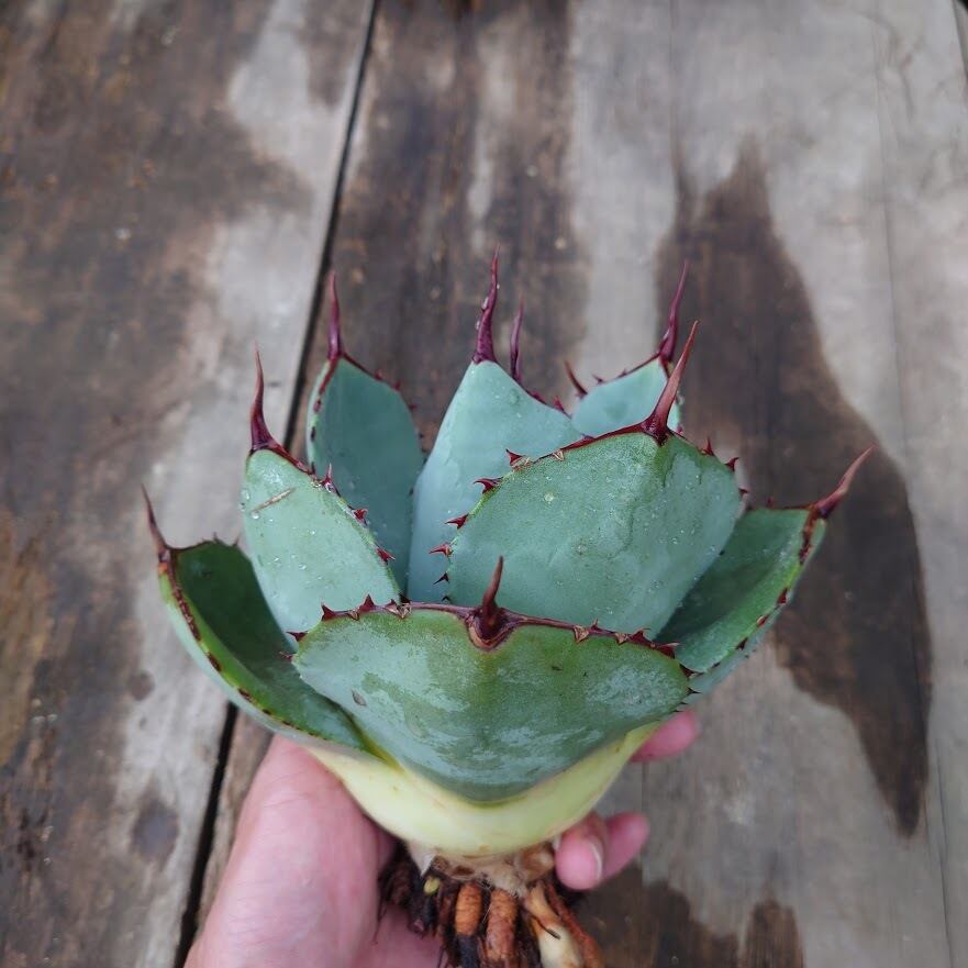 グレーがかった葉に鋭く長く伸びる赤いスピンが大変美しいクオリティの高い株です。6月26日USAより到着ほやほや株です。